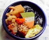 今朝は息子と娘と私がお揃いのお弁当(^^;)*朝*マンナンライス 200Kcal唐揚げの甘酢和え 120Kcal卵焼き 40Kcal絹上げの煮付け 50Kcal麦茶 0Kcalサプリ 20Kc 2012/01/16