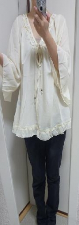 株式会社スタイルブロック さんの ビジュー付ドルマンスリーブシフォンブラウスを 紹介いたします 早速、袋から出してみます 下記の写真は、後ろ側です 襟元をアップにしてみました ビジューが沢山ついています ビジューとは、キラキラのストーン の部分の事です もしも… 2011/10/22