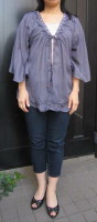 スタイル ブロックさんの可愛いブラウス 届いた時、思っていたより薄手 でも白い長袖のティシャツとあわせてきたら 以外にもあたたかったです それにドレープ袖で前はひもで結ぶタイプだったので とっても着やすかったです スカートでもジーンズでもOKだったので 着回しができて重宝しそうで… 2011/12/15
