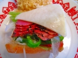 店内で焼き上げたパンにシャキシャキの野菜とローストビーフやチキンなどをたっぷりサンドイッチ。