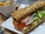 店内で焼き上げたパンにシャキシャキの野菜とローストビーフやチキンなどをたっぷりサンドイッチ。