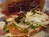 店内で焼き上げたパンにシャキシャキの野菜とローストビーフやチキンなどをたっぷりサンドイッチ。
