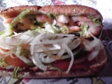 先日帰りが遅くなったので、頂いた無料券を使おうとサブウェイで夕食 いつもランチだったので、なんか新鮮(笑) チーズローストチキンははじめて食べるメニューなので楽しみ♪ 今回のカスタマイズは パン→ハニーオーツ(トースト) 野菜→ピクルスオリーブ抜き、トマト、ピーマ… 2011/01/30