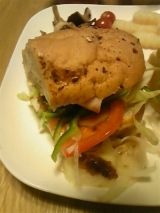 店内で焼き上げたパンにシャキシャキの野菜とローストビーフやチキンなどをたっぷりサンドイッチ。