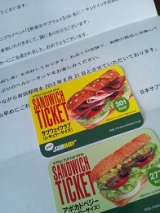 先日、長男の彼女が急遽来た時に、大活躍でした、サブウェイの野菜サンド{/m_0155/} お試し券の『サブウェイクラブ』とBLTとターキーブレスト 2013/08/26