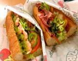 店内で焼き上げたパンにシャキシャキの野菜とローストビーフやチキンなどをたっぷりサンドイッチ。