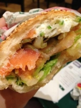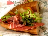 生ハム&マスカルポーネ(セサミ、トースト有り、オニオン抜き他多め、ドライトマトソース)★★★★(4) これくらいでいいですか?の確認の際勇気を出してオリーブをさらに増やしてもらいました!このサンドイッチには相性抜群だと思ったので実際すごくあっていておいしかったです♪生ハムは臭みがないのはいいの… 2013/10/06