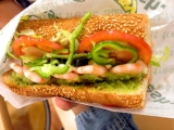 サブウェイのサンドイッチ♪こちら、先日食べたものちょっと忙しかったので、お持ち帰りして食べましたお店も混んでたしねこの日のセレクトは「えびアボガド」SABWAYのサンドの中で人気ナンバーワンなんだそうですよ(←HPに書いてあったw)いつもはパンはハニーオーツが好きでそればかり頼むんですが、珍し… 2013/09/27