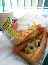野菜のサブウェイファンサイトファンサイト参加中 やっと当たったサブウェイさん今回はサブウェイ新商品!『あらびきソーセージメルト』わーい♪ 羊腸のソーセージにボイル野菜が入ってます生野菜が苦手なチビもおいしくいただけましたよ 2013/12/31
