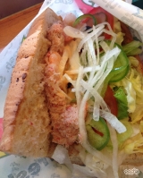 期間限定サンドを食べてきました♪ウィート、トースト有り、オニオン抜き他多めで ぷりぷり海老にカニがマッチして安定のおいしさ♪そしてこのスパイシーオーロラソースなるものがおいしいっ!思っていたより辛くなく、むしろ甘さもあってとろりとしたこくもあって絶品です♪これは他のサンドにもあわせてみよーっと^… 2013/02/15