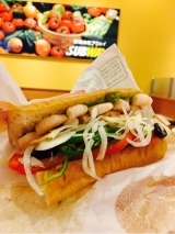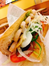 店内で焼き上げたパンにシャキシャキの野菜とローストビーフやチキンなどをたっぷりサンドイッチ。
