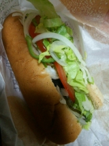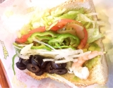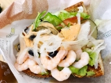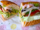 店内で焼き上げたパンにシャキシャキの野菜とローストビーフやチキンなどをたっぷりサンドイッチ。