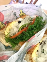 店内で焼き上げたパンにシャキシャキの野菜とローストビーフやチキンなどをたっぷりサンドイッチ。