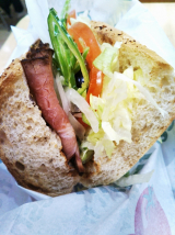 店内で焼き上げたパンにシャキシャキの野菜とローストビーフやチキンなどをたっぷりサンドイッチ。
