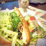 店内で焼き上げたパンにシャキシャキの野菜とローストビーフやチキンなどをたっぷりサンドイッチ。