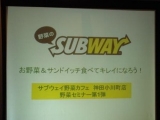 SUBWAY 831cafe神田小川町店 は…野菜の美味しさや、健康への よさを広めようと生まれた 野菜のサブウェイ のコンセプト店舗 こちらで先日野菜セミナーが行われ ました野菜のサブウェイ 主催です なんと、♪しおんさん と一緒に参加 させて頂きましたぁぁ有難う セミナーの講師… 2011/12/01