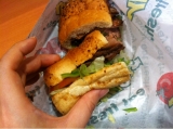 店内で焼き上げたパンにシャキシャキの野菜とローストビーフやチキンなどをたっぷりサンドイッチ。