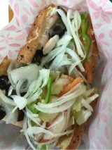 店内で焼き上げたパンにシャキシャキの野菜とローストビーフやチキンなどをたっぷりサンドイッチ。
