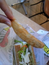 久しぶりに実家へ向かう途中!! おぉこんな所にサブウェイの新店舗 ちょっと嬉しくなり「BLT」と「アボカド」を注文♪ お野菜たっぷり採れるのでうれしいんですよね パンやドレッシングを選べるのもうれしい 特に夫は最近「痛風!!!」になってから お野菜にとっても助けられているので興味深々 結論… 2011/11/22