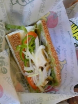 モニプラのイベントで、サブウェイさんに頂いた無料試食券でBLTとアボカドベジー食べてきましたメニューを聞いてパンを焼いてくれた店員さんに、野菜多目でって伝えたんですけど、二つ目の野菜のところで店員さんが代わって、野菜増量してくれやんかった増量を結構楽しみにしてたから残念だぁでも、めっちゃ野菜が美味し… 2011/10/23