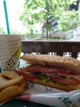 またまたサブウェイへ新緑やきれいなお花をみながらぼっーと過ごすのもたまには良いね♪BLTサンド今回は野菜など増減せず標準タイプにしましたベーコンやドレッシングの塩気とシャキシャキ生野菜との相性は抜群です!今回はオーブンポテトを添えてみましたこちらのポテトはオーブンで焼いているのでカロリーは控… 2010/06/15