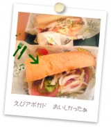 お天気が良かったので お散歩ついでにサンドウィッチランチをしてみましたサヴウェイの「えびアボガド」をお目当てにうきうきでお出かけしてきましたよ♪なんと…モニプラさんのモニターに当選しちゃったd(≧∀≦)b゚夫はチーズローストチキン私はえびアボガド をオーダーサヴウェイのサンドイッチは 程よ… 2010/05/24