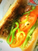 モニプラ様からのご紹介で サブウェイの炭火焼カルビサンドをお試しさせていただきました 送っていただいたクーポンを持ってサブウェイへ サブウェイのサンドイッチお野菜いっぱいでうれしいわ 炭火独特のスモーキーな香りと、特製和風甘辛だれに 食欲そそられます これで296キロ… 2010/05/21