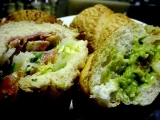 店内で焼き上げたパンにシャキシャキの野菜とローストビーフやチキンなどをたっぷりサンドイッチ。