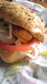本日のランチはサブウェイでオーダーしたのは、“スペイン風オムレツミートソース”トルティージャにミートソースが相性の良いサンドイッチ野菜を増量してもらって、バジルのソースをかけてもらいましたたっぷり野菜が摂れるのって嬉しい!!それにしても、ボリュームあったなぁ(笑) Click Pleas… 2012/10/25