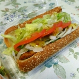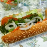 店内で焼き上げたパンにシャキシャキの野菜とローストビーフやチキンなどをたっぷりサンドイッチ。
