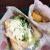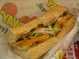 店内で焼き上げたパンにシャキシャキの野菜とローストビーフやチキンなどをたっぷりサンドイッチ。
