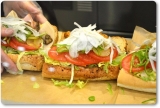 店内で焼き上げたパンにシャキシャキの野菜とローストビーフやチキンなどをたっぷりサンドイッチ。