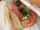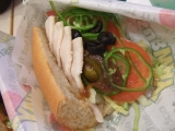 ターキーブレスト(ウィート、トースト有り、オニオン抜き他多め、そして今回初めてホットペッパーをプラスしてみました!)★★★★(4) いつにも増してもりもりの野菜にバルサミコ酢ドレッシングがマッチしておいしい♪ホットペッパーはぴりっじわっと結構本格的な辛さでしたが辛いの苦手な私でもおいしくいただ… 2012/12/18