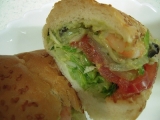 店内で焼き上げたパンにシャキシャキの野菜とローストビーフやチキンなどをたっぷりサンドイッチ。
