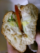 店内で焼き上げたパンにシャキシャキの野菜とローストビーフやチキンなどをたっぷりサンドイッチ。