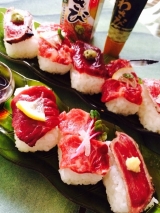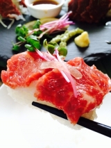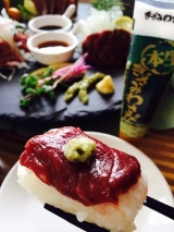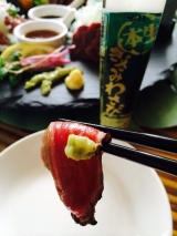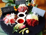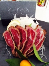 あっさりヘルシーな赤身、秘伝のタレに漬け込みじっくり表面を炙ったタタキの入った豪華3点セットです。