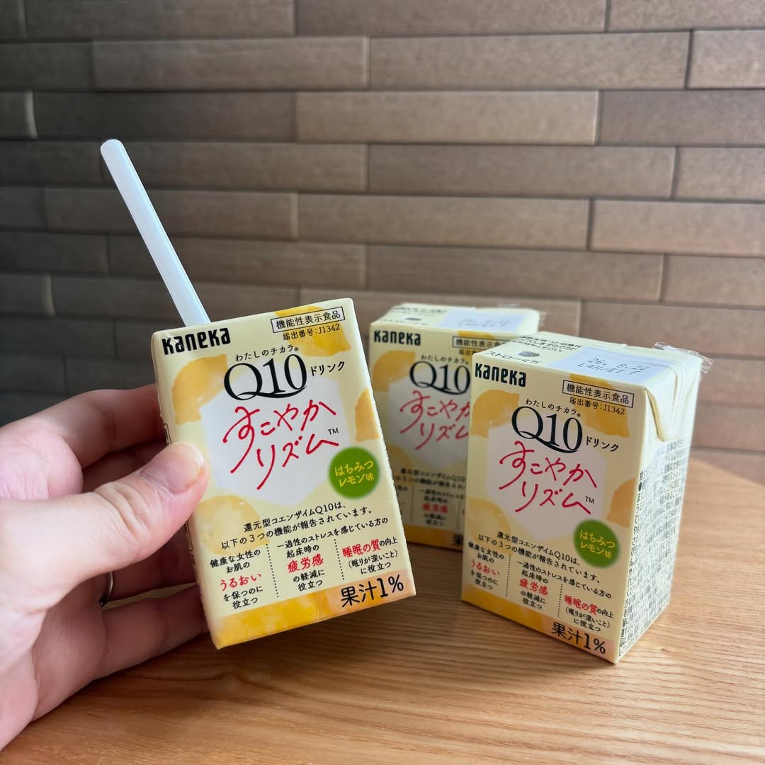 * Thank you * 株式会社カネカ様より わたしのチカラ Q10ドリンク すこやかリズム をいただきました。 こちらは還元型コエンザイムQ10を配合した 機能性表示食品のドリンクです。 還元型コエンザイムQ10を 一本に100mg配合しました。 還元型コエンザイムQ10は ・肌のうるおいを保つ機能 ・睡眠の質の向上に役立つ機能 ・起床時の疲労感の軽減に役立つ機能 という機能が報告されています。 味は飲みやすいはちみつレモン風味で 朝でも夜でも飲みやすい爽やかな味わいです。 脂質ゼロなのも嬉しいです♪ 常温保存可能なので便利です。 食事では摂りにくいコエンザイムQ10を おいしく手軽に飲むことができます。 ぜひ飲んでみてくださいね♪ #PR #sukoyaka #sukoyaka #Q10drink #monipla #sukoyaka_fan