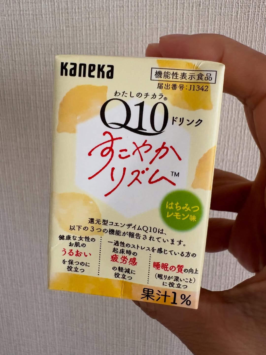 【機能性表示食品】 還元型コエンザイムQ10を100mg配合したドリンクが新発売! はちみつレモンの爽やかな甘みで、リラックスタイムにピッタリな商品です。 還元型コエンザイムQ10には、「肌のうるおいを保つ機能」、「睡眠の質の向上に役立つ機能」、「起床時の疲労感の軽減に役立つ機能」の3つの機能が報告されています。