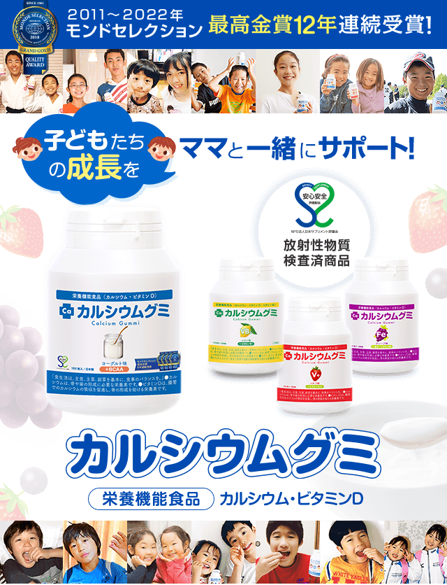 成長をサポート!「カルシウムグミ Fe(グレープ味)」