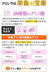 クロレラとは、淡水に生息する緑藻類の一種で、1000分の3~8ミリという小さな植物です、アミノ酸バランスに優れた良質なタンパク質をはじめ、ビタミン類、ミネラル類、葉酸、食物繊維、クロレラだけにしか存在しない独自成分C.G.F.などをバランス良く含んでいます。