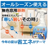 TVで大反響!あなたの省エネ対策を教えて「快適省エネスプレー」をゲットしよう!【塗布実験】夏の窓面から1cm離れた場所で室温が43度低く、1m離れた場所で15度低くなりましたつまり、このスプレーを使用すると、【夏】であれば、窓ガラスの放熱断熱の効果がアップし、室温の温度上昇を少なくすることが… 2011/08/18