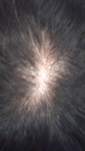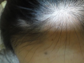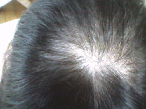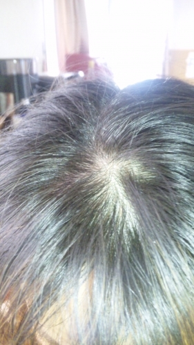 髪はとっても多くて太いのですが、部分的に薄くなってきてるのはっきりわかります 特に気になるのが、分け目に部分 地肌の白っぽ部分見えてきてます(この写真よりも薄いです) ああ、年って取りたくないですね 2011/09/16