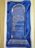過日入賞した、モニプラ内サンプロジェクトさんの企画、マイドッグイズオンリーわん選手権2009の、優勝トロフィーが届きました! P1030617 posted by (C)万里ママクリスタルの、シックで素敵なデザインです♪このトロフィーは、このプロジェクトのためだけに作られた、スペシャルメモリ… 2009/08/17