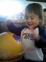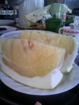 昨年末にモニプラさんで ばんぺいゆ が当たりましたこの果物、とても日持ちがするんです2/3に義父母と一緒に美味しくいただきました♪私の頭と比べて 2010/02/08