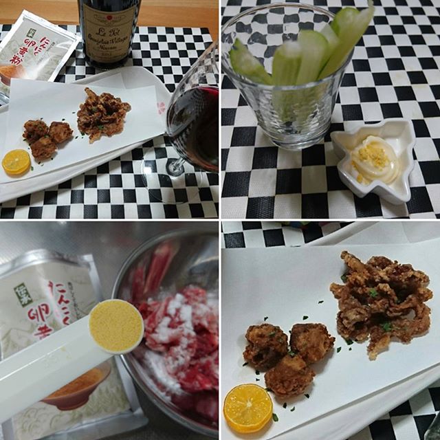 . せっかくボージョレ買ってきたのに、最近残業の毎日で、冷蔵庫の食材がとぼしくて...💦 . とりあえず有り合わせで😓 . . #豚小間切で2種食感の唐揚げ 豚小間切肉に片栗粉と塩、カイエンペパー、にんにく卵黄を揉み込み、広げてヒラヒラの状態と丸めた状態で揚げたもの。柚子をぎゅっと絞っていただきます。 カリカリと外サクサク中ふわふわの2種類の食感が味わえます。 #にんにく卵黄マヨディップのセロリスティック こちらは、スティック状に切ったセロリに、にんにく卵黄を加えたマヨネーズのディップで。 どちらにも使用した【にんにく卵黄】は栄養満点で、残業で疲れたカラダも元気が出そう❗ パウダー状なので、お料理にも使いやすくて◎ #ボージョレ解禁 #ボージョレヌーヴォー #ボージョレヴィラージュヌーヴォー #ルイテット #赤ワイン #ワイン #酒 #豚唐揚げ #豚天 #にんにくマヨネーズ #にんにくマヨディップ #セロリ #簡単おつまみ #簡単レシピ #おうちのみ #にんにく卵黄 #おうちごはん #monipla #サンプロジェクトファンサイト参加中 #スパイス #カイエンペパー #イタリアンパセリ #GABAN #スパイスブログ #スパイス大使 #クッキングラム