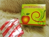 バイタドフィラス™は、1袋で2000万個以上の生きた善玉菌(アシドフィルス菌)を体内に送り込むことができるアップル味のサプリメントです。アシドフィルス菌とリンゴに含まれる食物繊維であるペクチンが腸の働きを正常な状態に整えます。