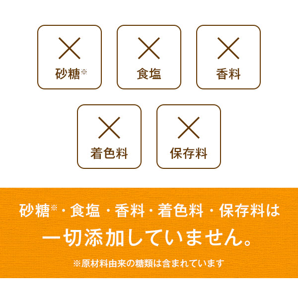 砂糖・食塩はもちろん、保存料も使用していません(原材料由来の糖類が含まれます)。マイルドなパンプキンタイプです。