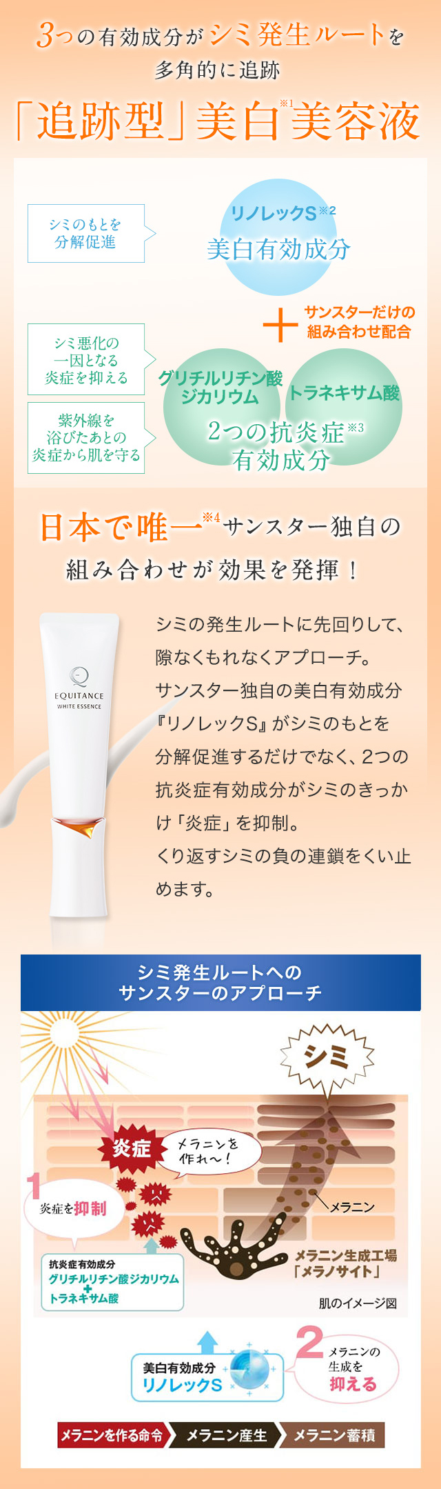サンスター独自の美白有効成分「リノレックS」と、