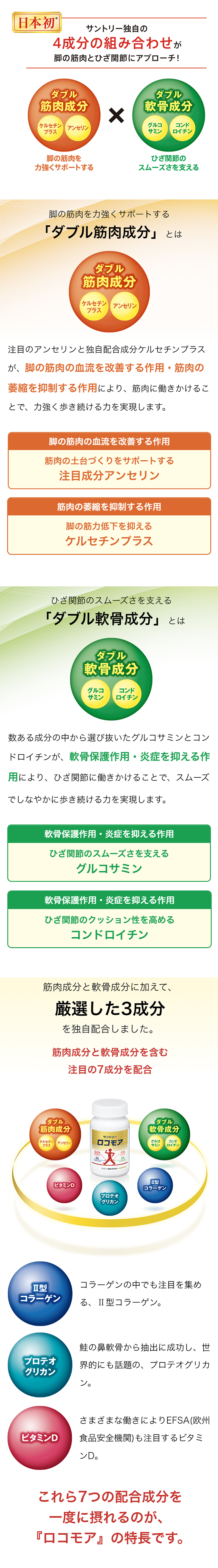 ロコモアは、脚の筋肉とひざ関節の両方に働きかけます。
