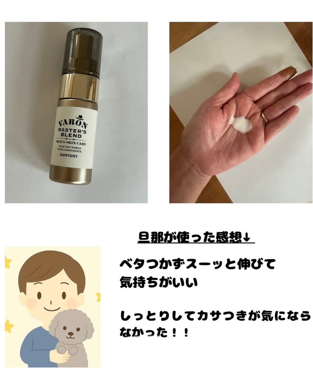 ✨ バロン フェイスウォッシュ きめ細かい泡でスッキリ洗える洗顔料。 余分な皮脂や汚れは落としつつ、つっぱらない仕上がり。 使った後は肌がさっぱり整う‼︎ ✨ バロン マスターズブレンド(オールインワンセラム) 洗顔後はこれ1本。 化粧水・美容液・乳液をまとめたオールインワンタイプ。うちの旦那でも簡単にスペシャルなスキンケアができちゃう‼︎ ベタつかずスーッとなじんで、しっとりハリのある肌へ。 忙しい時でもGOOD‼︎ #PR #サントリーウエルネス株式会社 #サントリーVARON #VARON #monipla #suntorywellness_fan